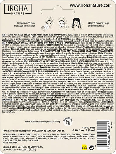 Iroha Nature Noni Μάσκα Ομορφιάς Προσώπου για Αντιγήρανση 20ml