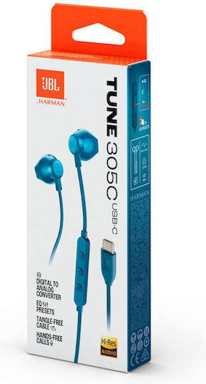 JBL Ακουστικά Ψείρες Earbuds Tune 305c Μπλε