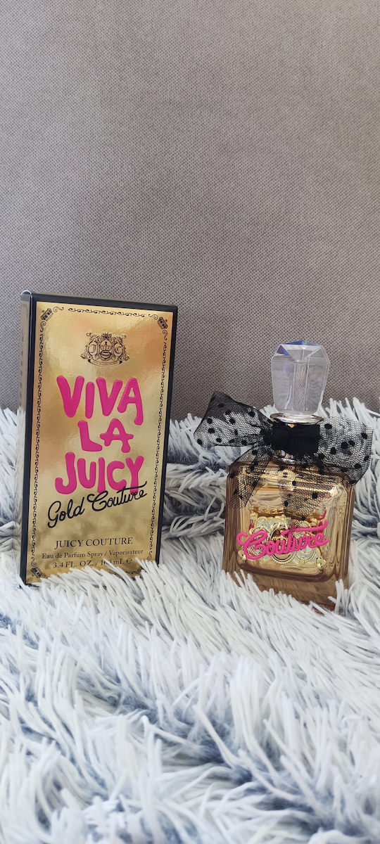Το άρωμα Juicy Couture Viva La Juicy Gold Couture Eau de Parfum ξεκινά με νότες κορυφής άγριας μούρας, προσφέροντας μια φρέσκια και φρουτώδη έναρξη. Στις μεσαίες νότες, αναδύονται αρώματα αγιόκληματος και γιασεμιού σαμπάκ, προσθέτοντας ένα λουλουδάτο και φωτεινό στοιχείο. Τέλος, οι νότες βάσης αποτελούνται από καραμέλα, βανίλια, κεχριμπάρι και σανδαλόξυλο, προσδίδοντας μια ζεστή, γλυκιά και απολαυστική επίγευση. Το άρωμα αυτό ενσωματώνει τη φρεσκάδα, τις λουλουδάτες νότες και τα ζεστά αρώματα.
