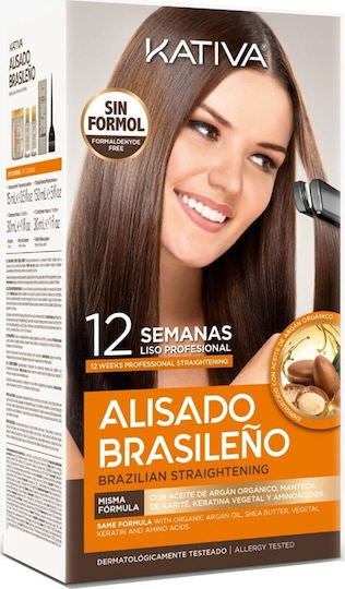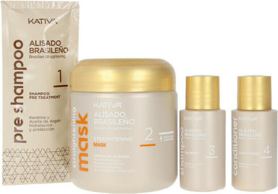 Kativa Brazilian Straightening Σετ Κερατίνης για Ισιωτική για Βαμμένα Μαλλιά με Σαμπουάν, Μάσκα και Conditioner 4τμχ