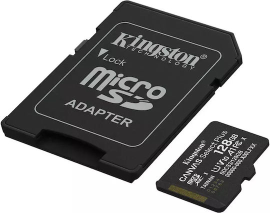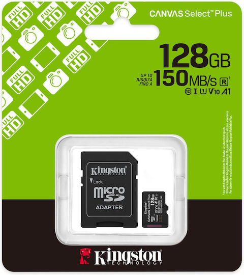 Kingston Canvas Select Plus microSDHC 128GB Class 10 U1 V10 A1 UHS-I με αντάπτορα