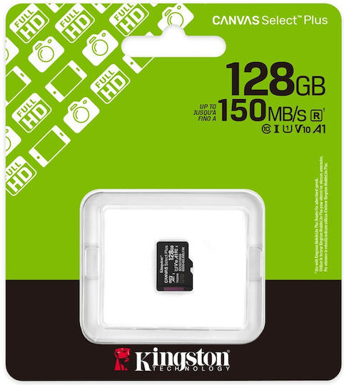 Kingston Canvas Select Plus microSDXC 128GB Class 10 U1 A1 με αντάπτορα