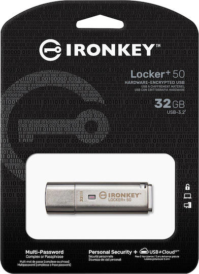 Kingston IronKey Locker+ 50 32GB USB 3.2 Stick Ασημί