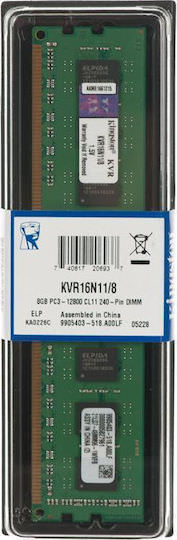 Kingston Valueram DDR3 με Module 1x8GB και Ταχύτητα 1600 για Desktop