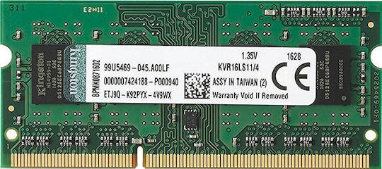 Kingston Valueram DDR3L με Module 1x4GB και Ταχύτητα 1600 για Desktop
