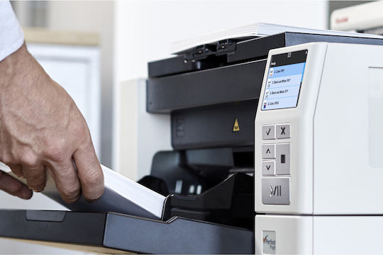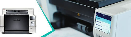 Scanner της εταιρείας Kodak, τύπου sheetfed. Το sheetfed scanner είναι εκείνο που διαθέτει ειδική υποδοχή στο πάνω μέρους του για την εισαγωγή της σελίδας που θέλουμε να σκανάρουμε. Η τροφοδότηση του γίνεται με φύλλα A3.