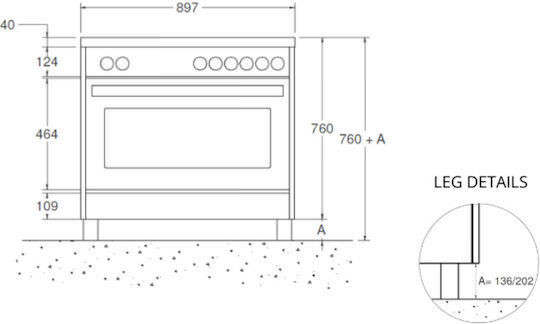La Germania Κουζίνα 117lt με Επαγωγικές Εστίες Π89.6εκ. Inox