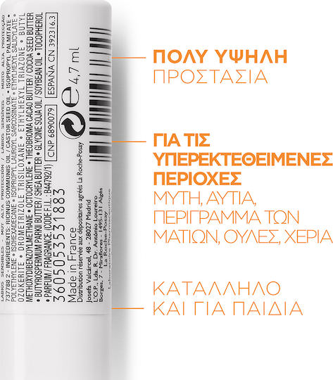Αντηλιακό σε μορφή στικ που παρέχει πολύ υψηλή προστασία για τις ευαίσθητες και υπερεκτεθειμένες περιοχές ή περιοχές που δεν πρέπει να εκτίθενται στον ήλιο όπως τα μάτια, η μύτη,τα χείλη, τα αυτιά, οι ουλές, οι κρεατοελιές.