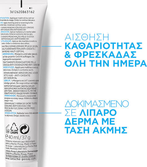 Το La Roche Posay Effaclar K+ Renovating Care Anti-Oxidant Anti-Sebum είναι μια καθημερινή φροντίδα προσώπου σχεδιασμένη για λιπαρές και με τάση ακμής επιδερμίδες. Βοηθά στη μείωση των μαύρων στιγμάτων, λειαίνει την υφή του δέρματος και προσφέρει αντιοξειδωτική προστασία. Παράλληλα, ρυθμίζει την υπερβολική έκκριση σμήγματος, μειώνοντας τη γυαλάδα και αφήνοντας την επιδερμίδα πιο ματ και καθαρή.