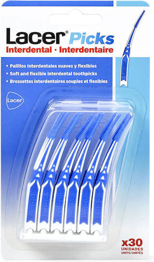 Lacer Picks Μεσοδόντιες Οδοντογλυφίδες Μπλε 30τμχ