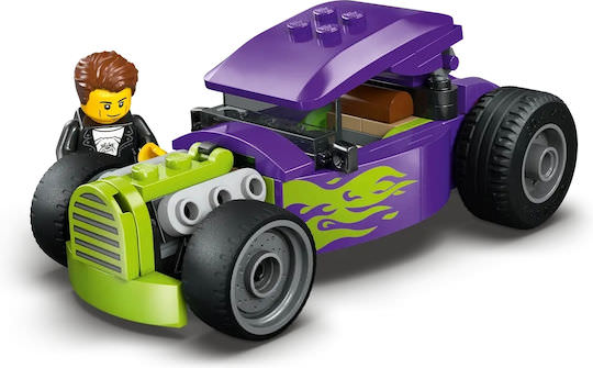 Οι μικροί λάτρεις των αγωνιστικών αυτοκινήτων ηλικίας 5 ετών και άνω μπορούν να δεθούν και να ετοιμαστούν για δράση αγώνων drag υψηλής ταχύτητας με το παιχνίδι αυτοκινήτου LEGO® City Hot Rod. Αυτό το κιτ κατασκευής μοντέλου αυτοκινήτου προσφέρει μεγάλες συγκινήσεις με λεπτομερή αγωνιστικά χαρακτηριστικά, όπως υπερμεγέθη πίσω ελαστικά, πιλοτήριο οδηγού με οροφή που ανασηκώνεται και έναν εντυπωσιακό μωβ συνδυασμό χρωμάτων με φωσφοριζέ πράσινες φλόγες. Απλώς προσθέστε τη μίνι φιγούρα οδηγού για γρήγορο παιχνίδι προσποίησης. Αυτό το μικρό σετ παιχνιδιού αποτελεί ένα εξαιρετικό δώρο γενεθλίων ή μια έκπληξη για παιδιά, αγόρια και κορίτσια που αγαπούν τα κλασικά αυτοκίνητα-παιχνίδια, τις κατασκευές και τη δημιουργική αφήγηση ιστοριών.