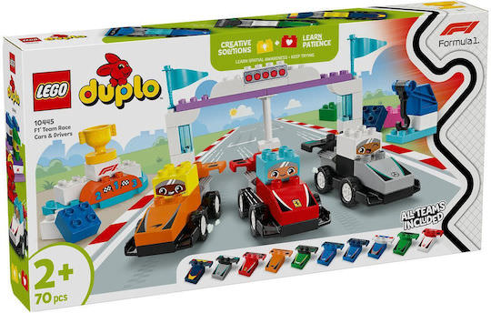 Ετοιμαστείτε να ζήσετε την εμπειρία των αγώνων με το LEGO® DUPLO® 10445 F1® Team Race Cars & Drivers. Αυτό το παιχνίδι οικοδόμησης προσφέρει διασκέδαση για όλη την οικογένεια, επιτρέποντας στους μικρούς φίλους να αναβιώσουν την αδρεναλίνη των αγώνων Formula 1®.
