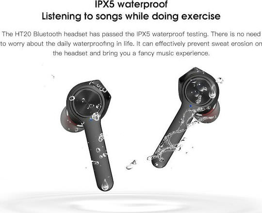 Lenovo HT20 In-ear Bluetooth Handsfree Ακουστικά με Θήκη Φόρτισης Μαύρα