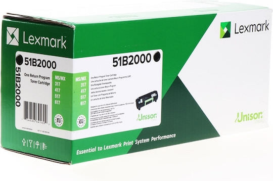 Lexmark 51B2000 Γνήσιο Toner Laser Εκτυπωτή Μαύρο Return Program 2500 Σελίδων 51B2000