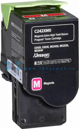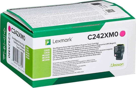 Lexmark C242XM0 Γνήσιο Toner Laser Εκτυπωτή Ματζέντα Return Program Extra High Yield 3500 Σελίδων