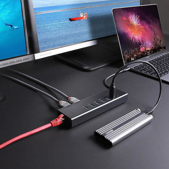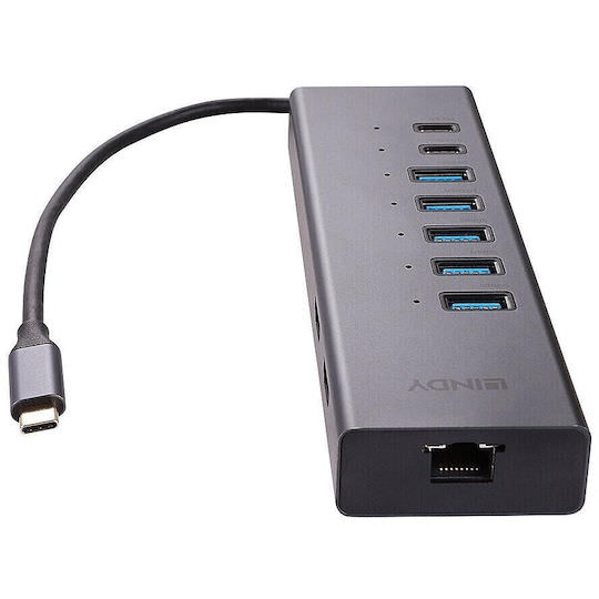 Lindy Dst-mini Duo USB-C / USB-A Docking Station με 4K PD Ethernet και σύνδεση 2 Οθονών Γκρι