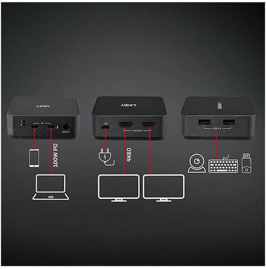 Ο εν-switch ενσωματώνει HDMI 4K60, προσφέροντας υποστήριξη για ανάλυση μέχρι 3840 x 2160 pixels. Διαθέτει δύο θύρες Type C και είναι συμβατός με USB πληκτρολόγια και ποντίκια. Το χρώμα του είναι γκρι, ενώ η κατασκευή του είναι από μέταλλο. Η τροφοδοσία του γίνεται μέσω USB και η είσοδος DC έχει τάση 7.5 V, με δυνατότητα τροφοδοσίας USB έως και 100 W.
