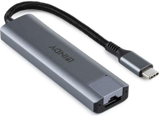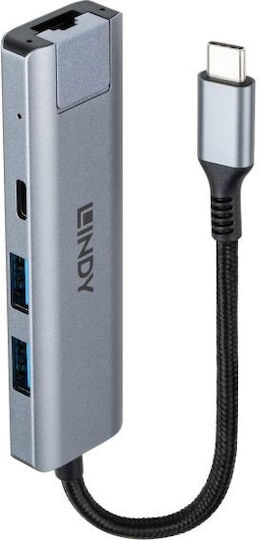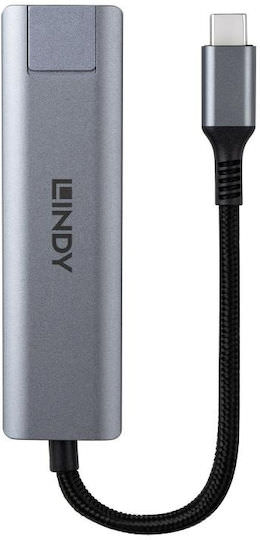 Lindy USB 3.2 Hub 3 Θυρών με σύνδεση USB-A / Ethernet Γκρι