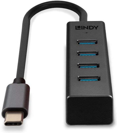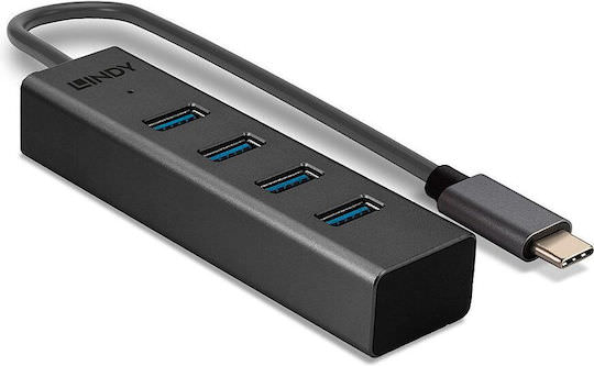 Lindy USB 3.2 Hub 4 Θυρών με σύνδεση USB-C Γκρι