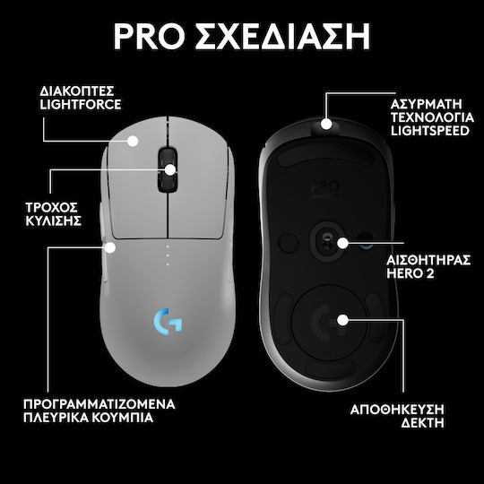 Logitech G Pro 2 Lightspeed Ασύρματο RGB Gaming Ποντίκι 44000 DPI Λευκό