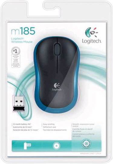 Το Logitech M185 είναι ένα ασύρματο mini ποντίκι, το οποίο συνδέεται στον υπολογιστή με dongle (πομποδέκτη) που τοποθετείται στη θύρα USB.
