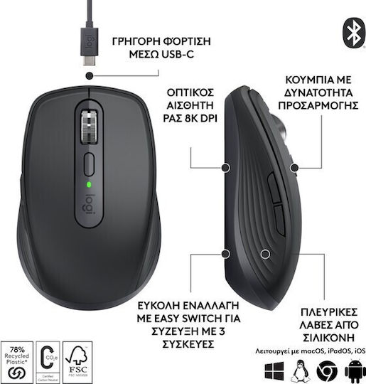 Logitech MX Anywhere 3S Ασύρματο Bluetooth Ποντίκι Graphite