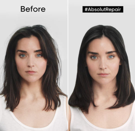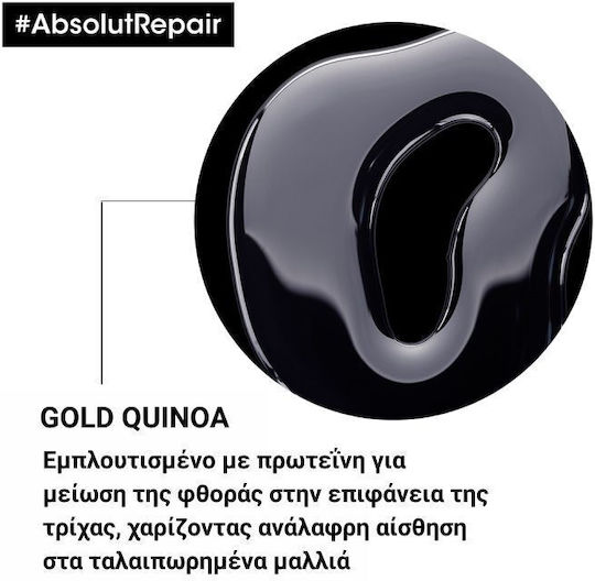 Χάρη στη δύναμη του Gold Quinoa + της Πρωτεϊνης, τώρα η Absolut Repair μειώνει τη φθορά στην επιφάνεια της τρίχας έως και 77% και προσφέρει 7x περισσότερη λάμψη, χαρίζοντας στα μαλλιά ανάλαφρο άγγιγμα.