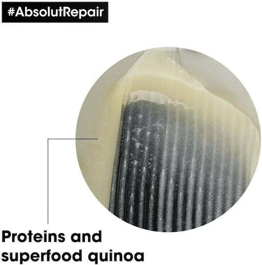 Χάρη στη δύναμη του Gold Quinoa + Πρωτεϊνη, τώρα η Absolut Repair μειώνει τη φθορά στην επιφάνεια της τρίχας έως και 77%* και προσφέρει 7x περισσότερη λάμψη**, χαρίζοντας στα μαλλιά ανάλαφρο άγγιγμα.