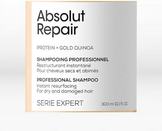 Εμπλουτισμένο με Gold Quinoa + Πρωτεϊνη, η επαγγελματική σύνθεση του Instant Resurfacing Shampoo καθαρίζει και αναδομεί αμέσως τα ταλαιπωρημένα μαλλιά, προσφέροντάς τους ανάλαφρη αίσθηση. Σε συνδυασμό με τα Absolut Repair Conditioner, Masque ή Golden Masque, εξασφαλίζει στα μαλλιά λάμψη και λείανση.