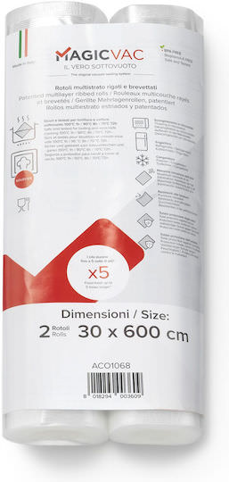 Οι σακούλες σφράγισης MagicVac 2 είναι ένα κορυφαίο αξεσουάρ που ενισχύει τις δυνατότητες συντήρησης τροφίμων. Με πλάτος 30 cm και μήκος 6 μέτρα, προσφέρουν σημαντική ποσότητα υλικού για δημιουργία σακουλών κενών αέρος σε προσαρμοσμένο μέγεθος.