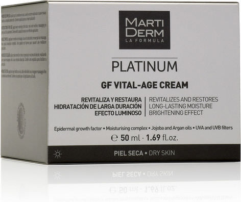 Ενυδατική Κρέμα Ημέρας Martiderm GF Vital-Age Platinum GF SPF 15, ιδανική για άνδρες και γυναίκες, σχεδιασμένη για απαιτητικούς ανθρώπους που φροντίζουν την επιδερμίδα τους.