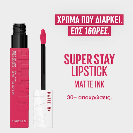 Το Maybelline Superstay Matte Ink είναι ένα υγρό κραγιόν που ξεχωρίζει για την εξαιρετικά μεγάλης διάρκειας φόρμουλά του, η οποία μπορεί να διατηρηθεί αναλλοίωτη έως και 16 ώρες. Η υφή του απλώνεται ομοιόμορφα στα χείλη, προσφέροντας πλήρη κάλυψη και σταθερό, ματ τελείωμα που δεν μεταφέρεται και δεν μουτζουρώνει.