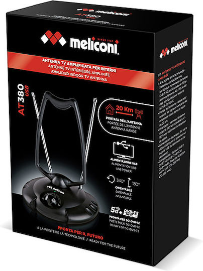 Meliconi AT-380 070-0612 Εσωτερική Κεραία Τηλεόρασης (Απαιτεί Τροφοδοσία) Μαύρη