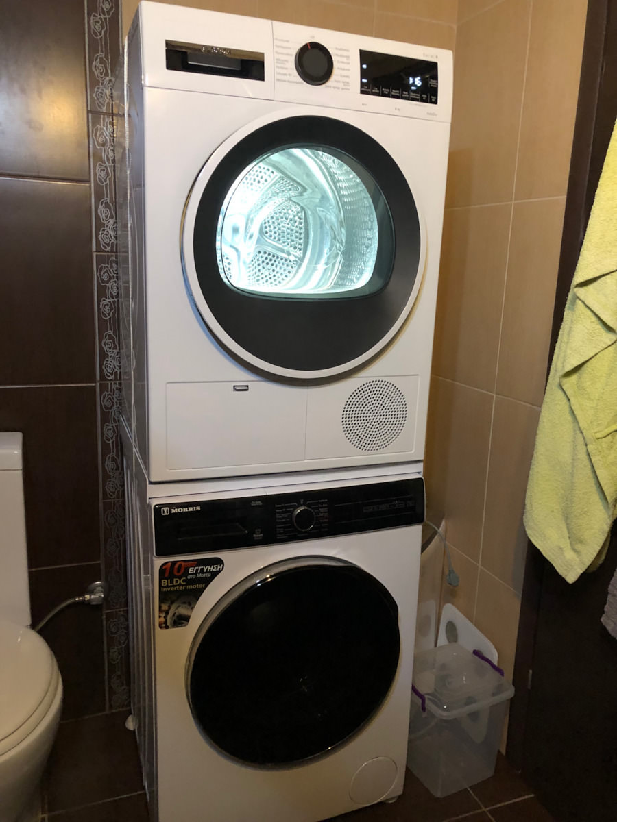 Εξοικονόμηση χώρου, τοποθετώντας το στεγνωτήριο πάνω από το πλυντήριο