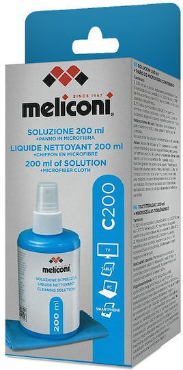 Meliconi Καθαριστικό Οθόνης Υγρό Καθαρισμού και Πανί με Μικροΐνες 200ml