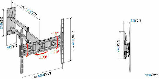 Meliconi Slimstyle Plus 400 SDR Βάση Τηλεόρασης Τοίχου με Βραχίονα έως 82″ και 30kg