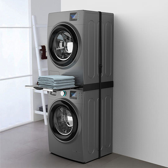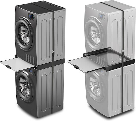 Βάση στήριξης για τοποθέτηση του στεγνωτηρίου επάνω στο πλυντήριο, σε μαύρο χρώμα. Κατασκευασμένη από εξαιρετικά ανθεκτικό techno-polymer. Συμβατή με πλυντήρια και στεγνωτήρια ρούχων με μπροστινή φόρτωση πλάτους 60 cm. Μέγιστο βάρος στήριξης 250kg.