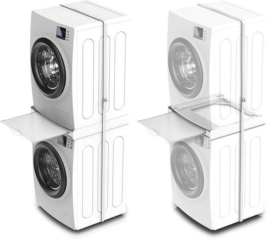 Βάση στήριξης για τοποθέτηση του στεγνωτηρίου επάνω στο πλυντήριο. Σχεδιασμένη για να είναι συμβατή με σχεδόν όλα τα πλυντήρια και στεγνωτήρια ρούχων, με μέγιστο βάρος στήριξης 250kg, εμπρόσθιας φόρτωσης πλάτους 60cm και βάθος έως 70cm.