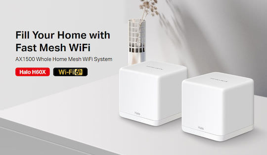 Mercusys Halo H60X v1 WiFi Mesh Network Access Point Wi‑Fi 6 Dual Band (2.4 & 5GHz) σε Διπλό Kit Λευκό