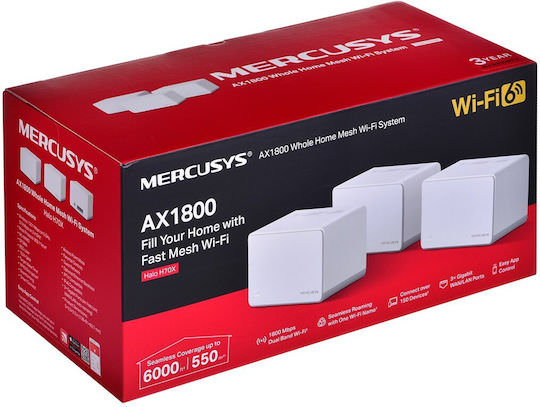 Mercusys Halo H70X v1 WiFi Mesh Network Access Point Wi‑Fi 6 Dual Band (2.4 & 5GHz) σε Τριπλό Kit