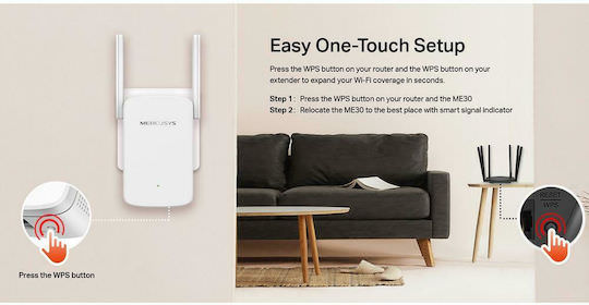 Ο σχεδιασμός του περιλαμβάνει μια Έξυπνη Ένδειξη Σήματος, η οποία σας καθοδηγεί στην βέλτιστη τοποθέτηση για τον επεκτατή, εγγυωμένης της καλύτερης δυνατής απόδοσης Wi-Fi. Η ρύθμιση είναι εξαιρετικά απλή, απαιτώντας μόνο ένα πάτημα του κουμπιού WPS τόσο στον δρομολογητή σας όσο και στο ME30.