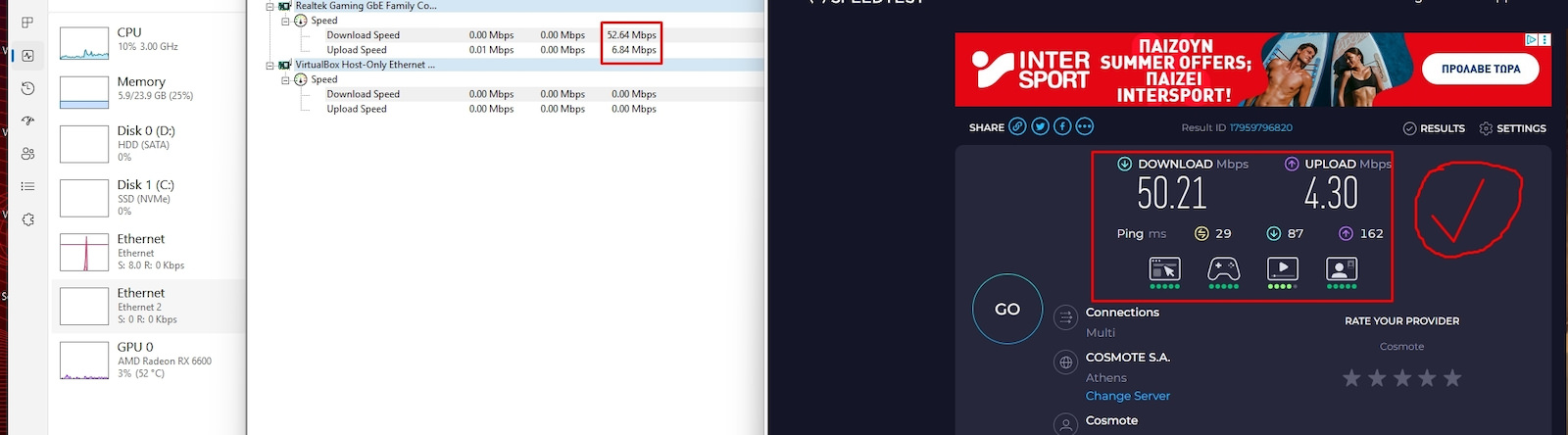 – Ταχύτητα Overline: 1000 Mbps