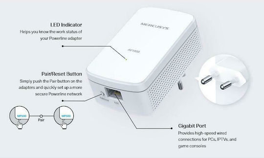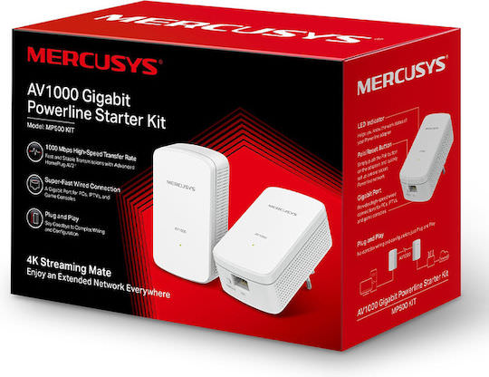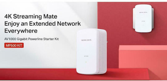 Mercusys MP500 KIT v1 Powerline Διπλού Kit για Ενσύρματη Σύνδεση και 2 Θύρες Gigabit Ethernet