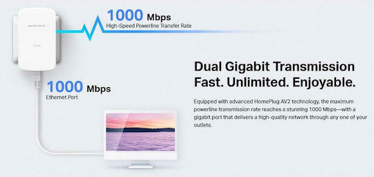 Εξοπλισμένο με προηγμένη τεχνολογία HomePlug AV2, ο μέγιστος ρυθμός μετάδοσης της γραμμής ισχύος φτάνει τα εκπληκτικά 1000 Mbps—με μια θύρα gigabit που παρέχει δίκτυο υψηλής ποιότητας μέσω οποιασδήποτε από τις πρίζες σας.