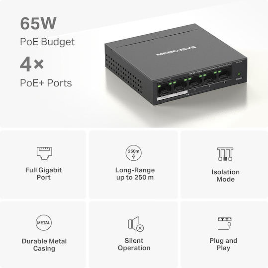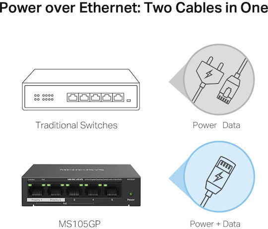 Mercusys MS105GP v1 Unmanaged L2 PoE+ Switch με 5 Θύρες Gigabit (1Gbps) Ethernet