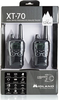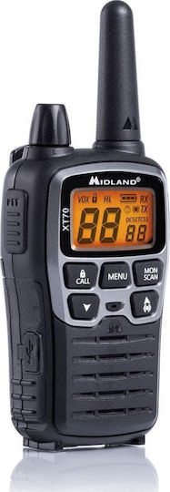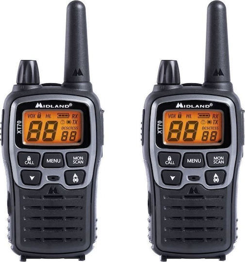 Midland XT70 Ασύρματος Πομποδέκτης PMR 0.5W με Μονόχρωμη Οθόνη Σετ 2τμχ Σε Ασημί Χρώμα
