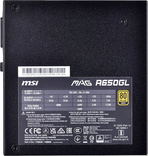 MSI MAG A650GL 650W Μαύρο Τροφοδοτικό Υπολογιστή Full Modular 80 Plus Gold