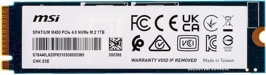 MSI Spatium M450 SSD 1TB M.2 NVMe PCI Express 4.0