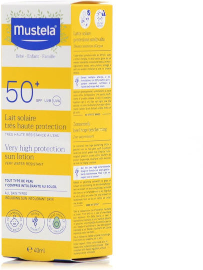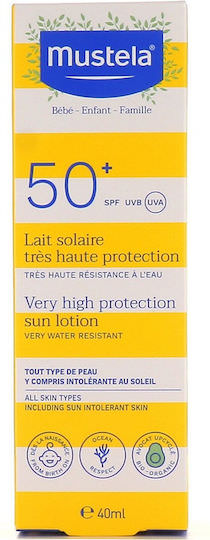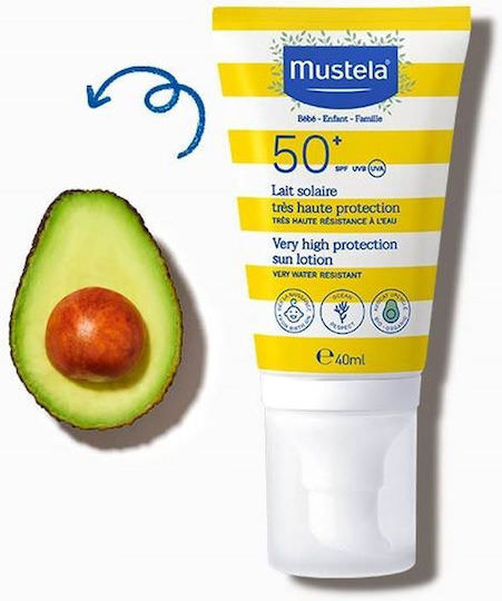 Mustela SPF50+ Αδιάβροχο Βρεφικό Αντηλιακό Γαλάκτωμα για Πρόσωπο & Σώμα 40ml