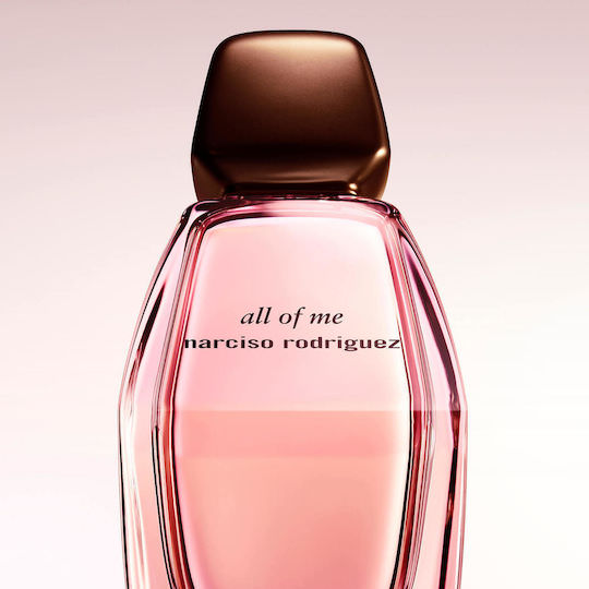 Το All Of Me του Narciso Rodriguez αποτελεί ένα πολύπλευρο άρωμα δημιουργημένο για γυναίκες που αναγνωρίζουν και αγκαλιάζουν την ομορφιά, τη χάρη και τη δύναμή τους. Συνδυάζει το τριαντάφυλλο Centifolia με το γεράνι Bourbon και περιλαμβάνει εκχύλισμα λευκής παιώνιας, πουδρένιας μαύρης ίριδας και τουμπερόζας, δημιουργώντας ένα μοναδικό λουλουδάτο άρωμα. Η καρδιά του αρώματος αποτελείται από ντελικάτο αγνό λευκό μόσχο, αναμειγμένο με έξι διαφορετικές νότες μόσχου που προσδίδουν ξεχωριστές διαστάσεις στο άρωμα. Στη βάση του, το ζεστό σανταλόξυλο και οι βελούδινες νότες κεχριμπαριού προσφέρουν μια πλούσια αίσθηση.